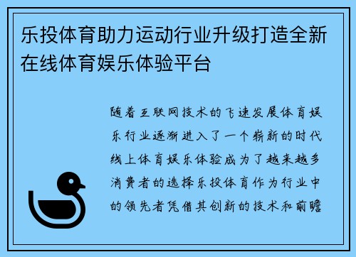 随着科技的不断进步和体育产业的蓬勃发展,飞博体育以其创新的技术手段和独特的市场定位,正助力着体育产业的升级。本文将从四个方面详细探讨飞博体育如何聚焦创新发展与用户体验优化,推动体育产业向更高层次、更广泛领域发展。首先,飞博体育通过精准的数字化服务,提升了体育产业的运营效率和市场竞争力。其次,飞博体育...