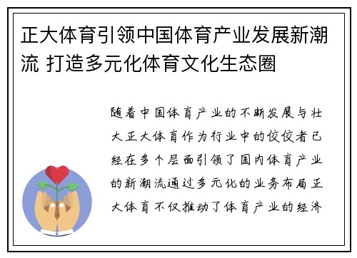 随着全球足球与体育产业的不断发展,米兰体育中心作为一个重要的体育产业枢纽,正在成为全球体育文化和商业的交汇点。本篇文章将从四个方面对米兰体育中心的发展、其对全球足球及体育产业的影响,以及如何推动两者的融合与发展进行详细分析。首先,本文将探讨米兰体育中心的历史与背景,了解其在全球体育产业中的地位与作用...
